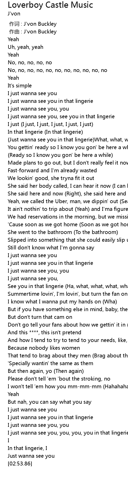 | [02:37.88] | I just wanna see you, you, you, you in that lingerie |