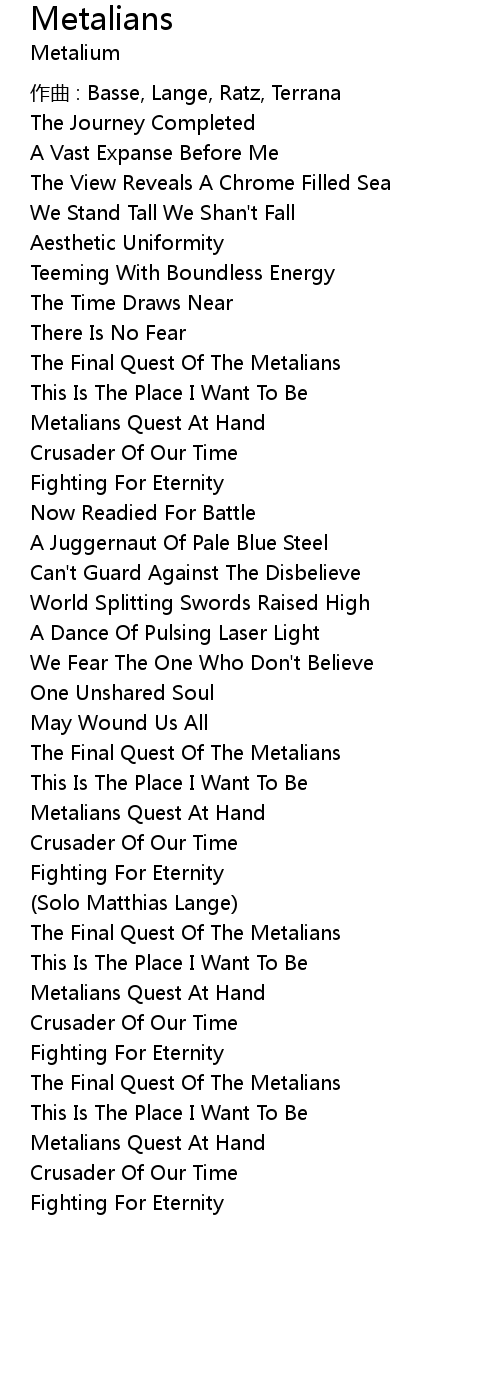 | Song | Metalians |