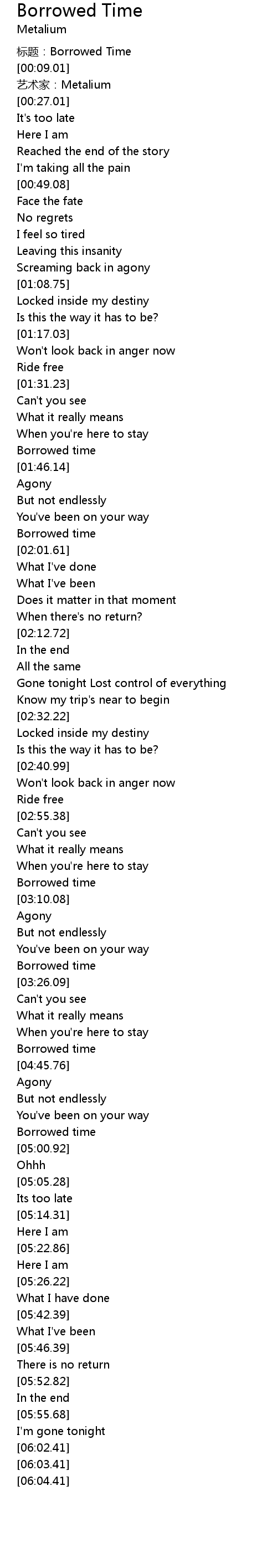 | [04:41.26] | Borrowed time |