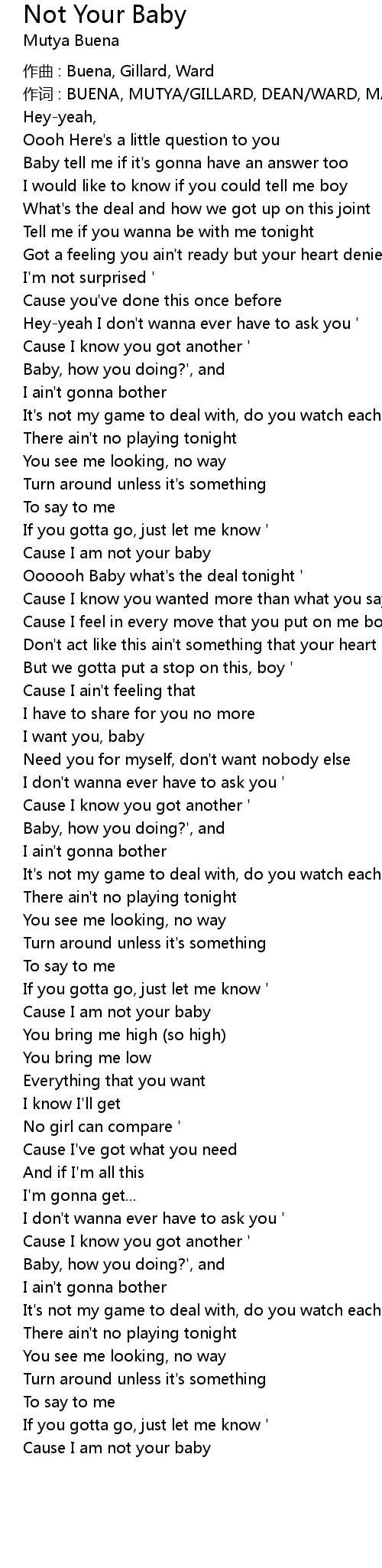 | Song | Not Your Baby |