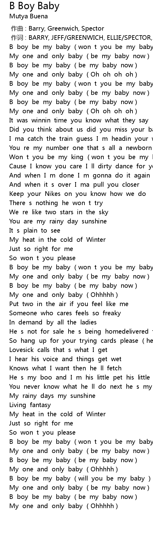 | [00:28.261] | B boy be my baby (be my baby now) |
