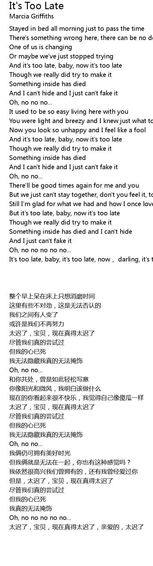 | [03:31.910] | It's too late, baby, it's too late, now, darling, it's too late |