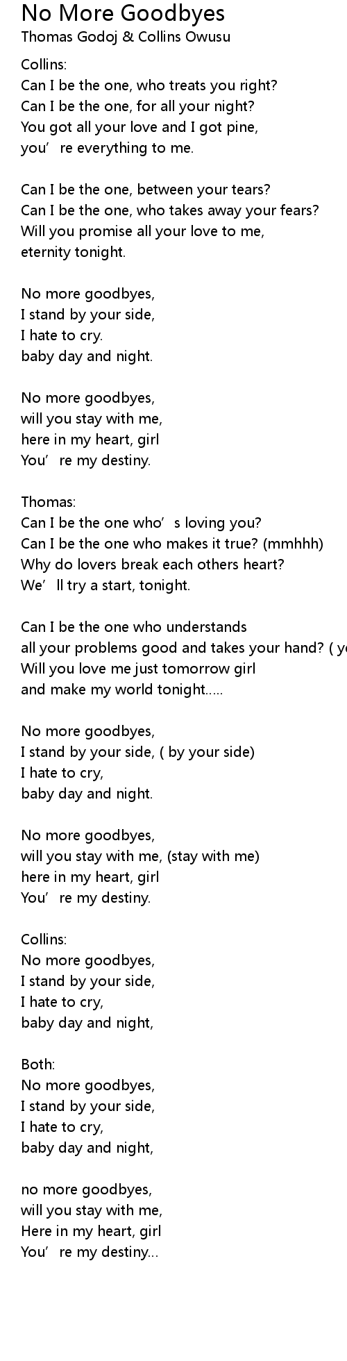 | No more goodbyes, | |