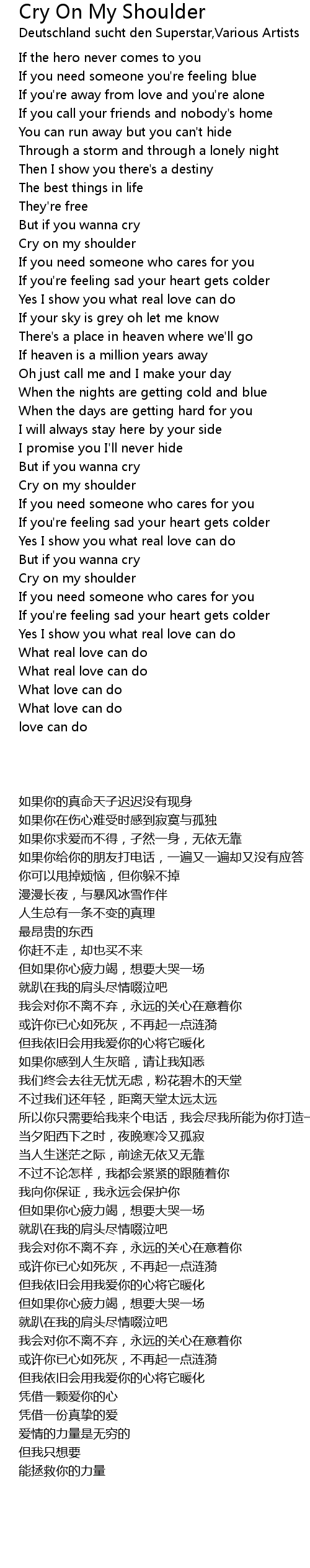 Cry on my shoulder |