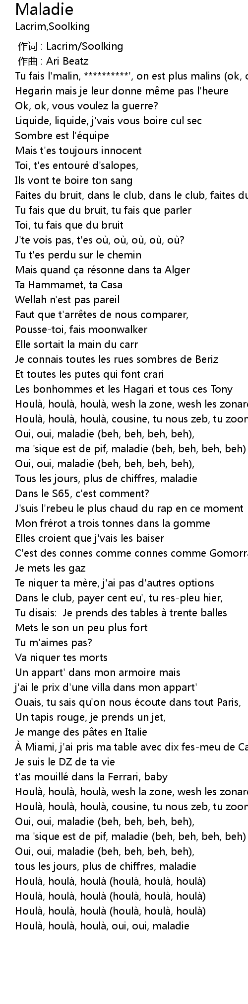 | [00:00.000] | 作词 : Lacrim/Soolking |