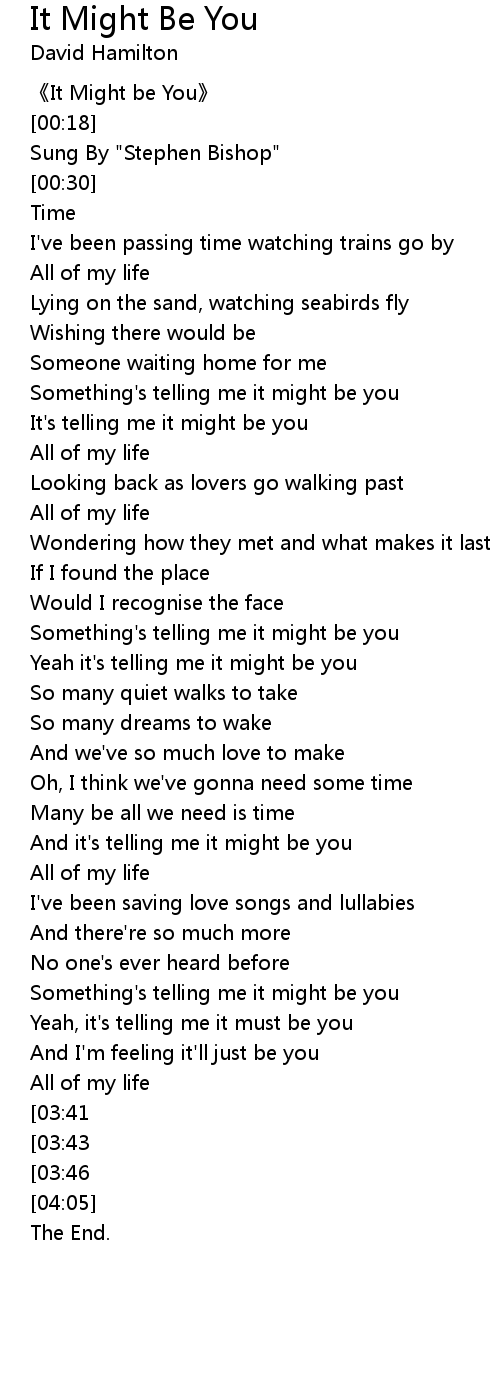 | [03:52][03:41][03:30] | May be it' s you it' s you |