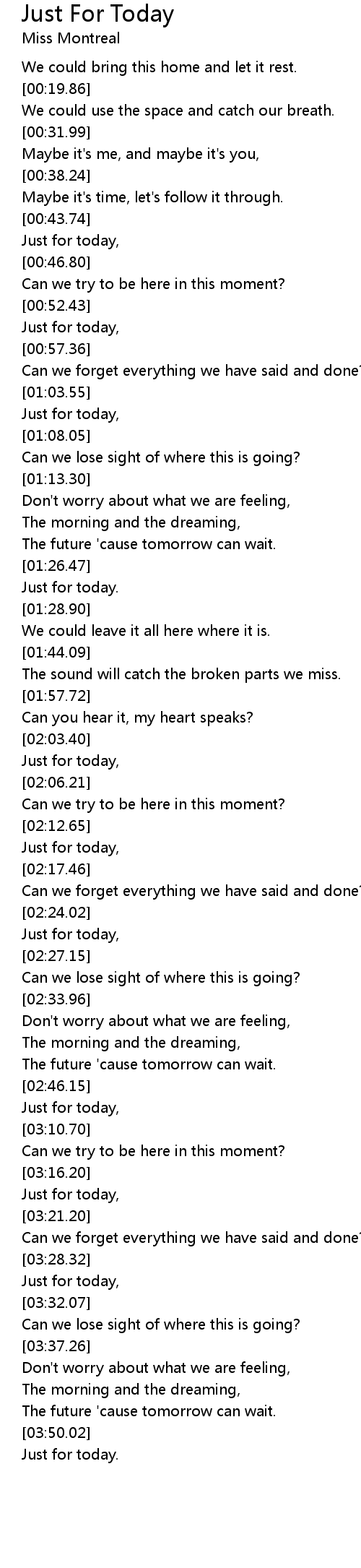 Just for today, |