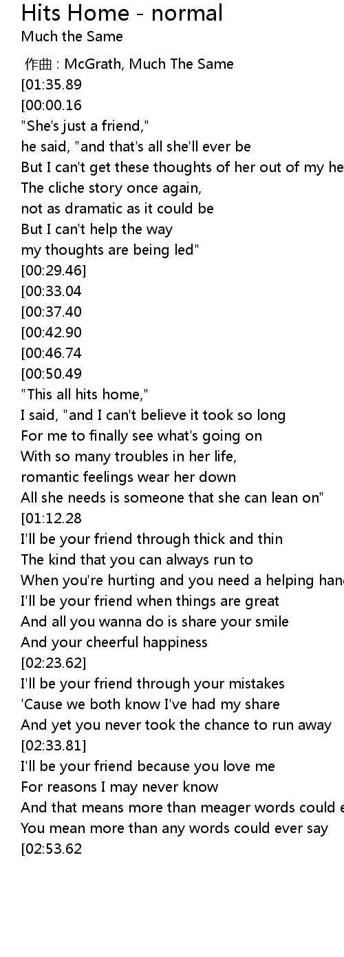 | [02:03.75] | I' ll be your friend through thick and thin |