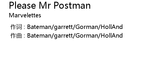 | Song | Please Mr Postman |