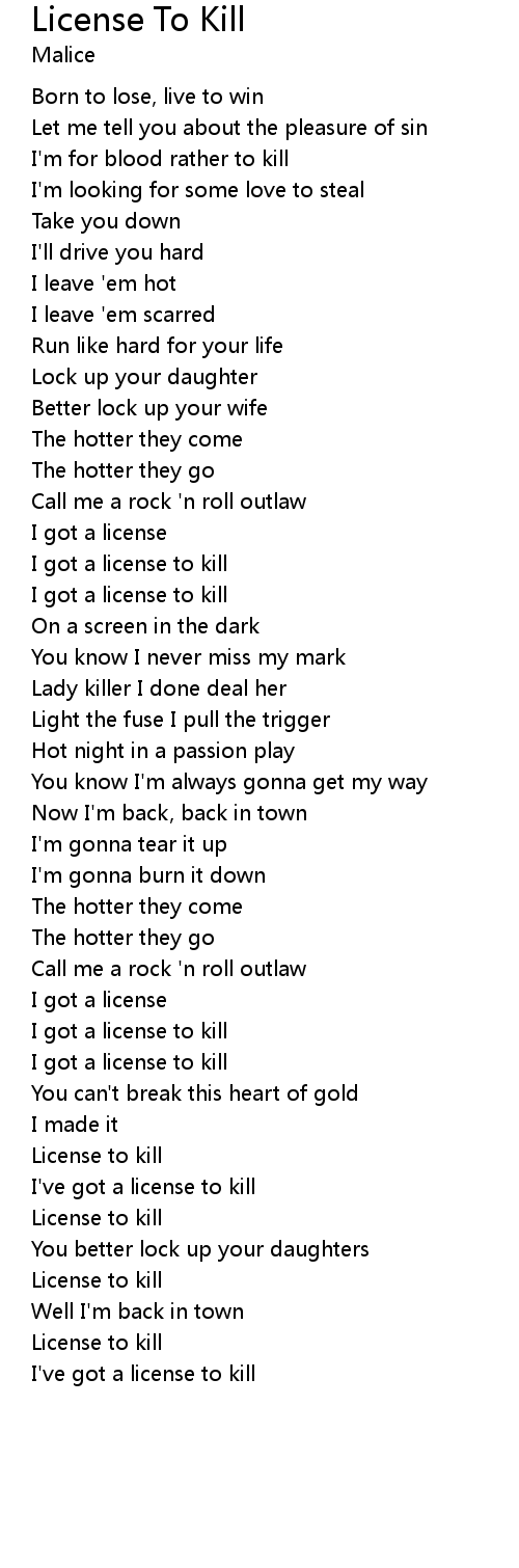 License to kill |