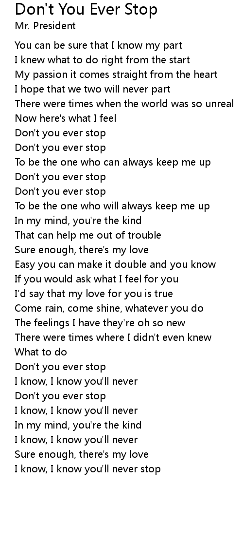 Don't you ever stop |