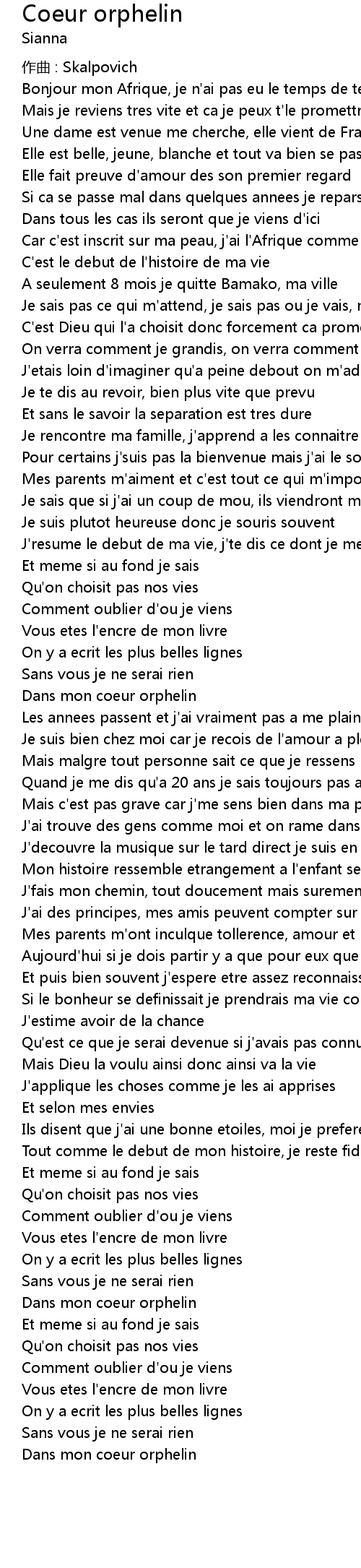 | Song | Coeur orphelin |