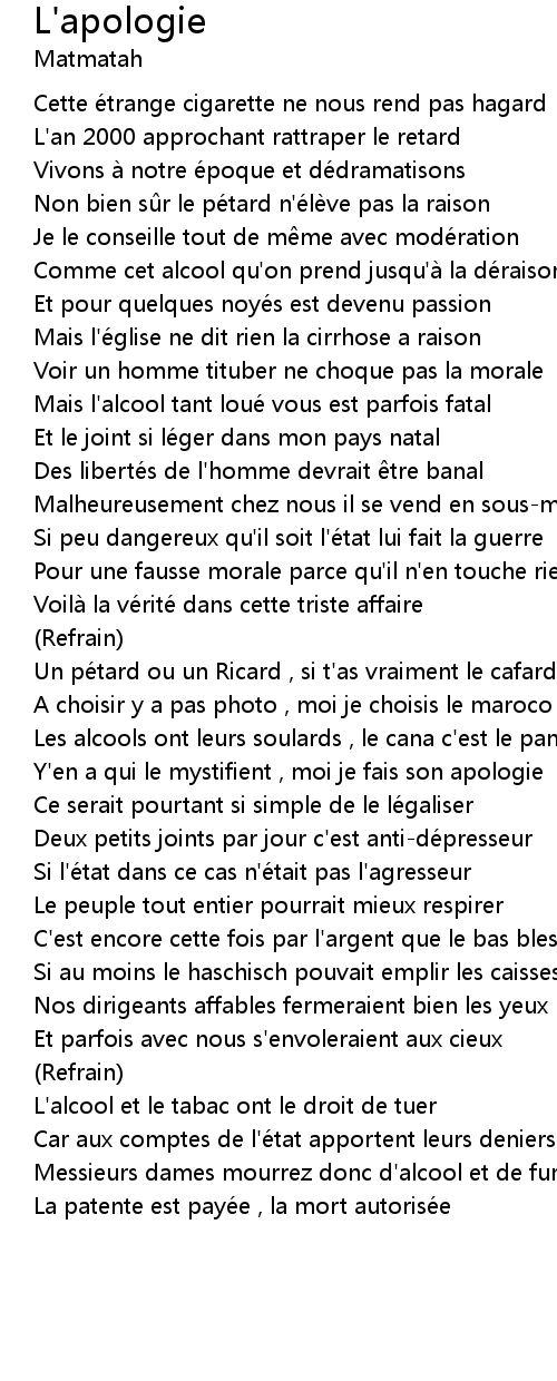 | Y' en a qui le mystifient , moi je fais son apologie | |