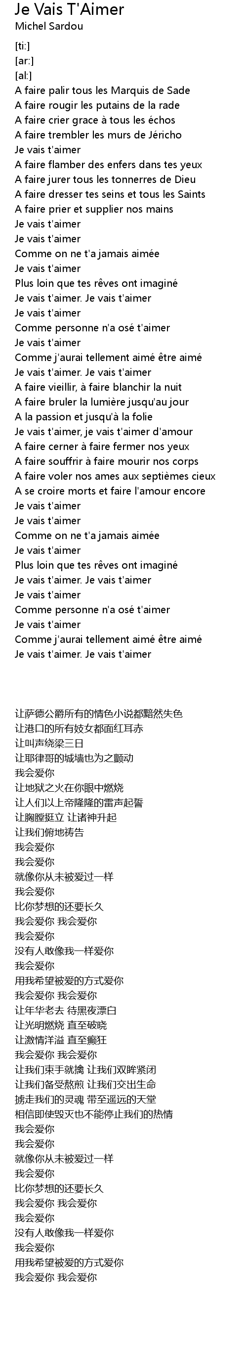 | [02:49.53] | Je vais t' aimer. Je vais t' aimer |