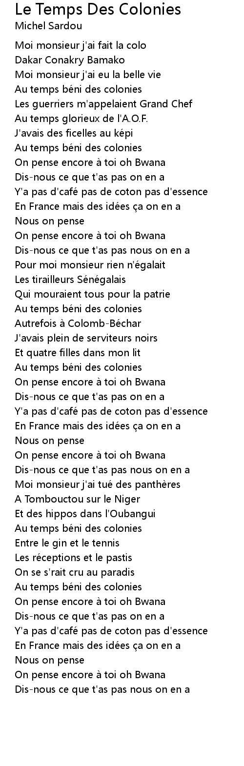 | Y' a pas d' cafe pas de coton pas d' essence | |