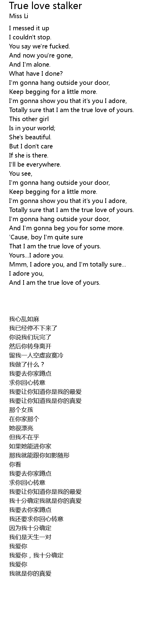Totally sure that I am the true love of yours. |