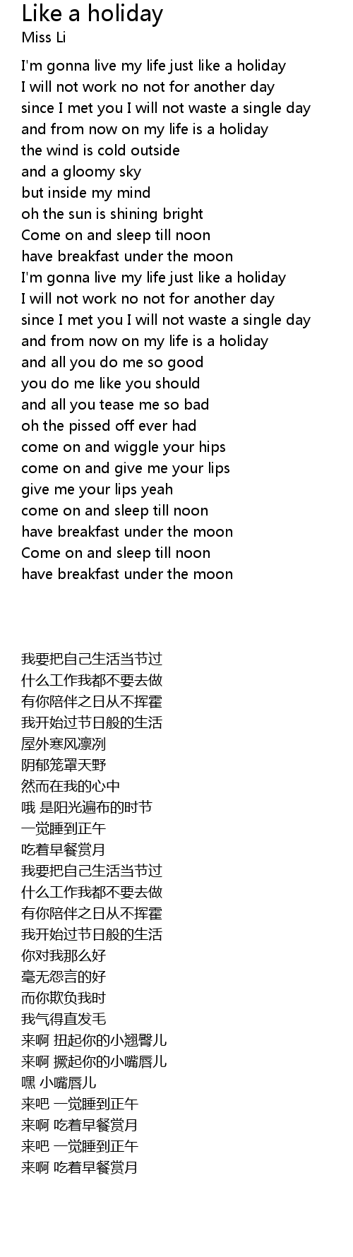 I'm gonna live my life just like a holiday |