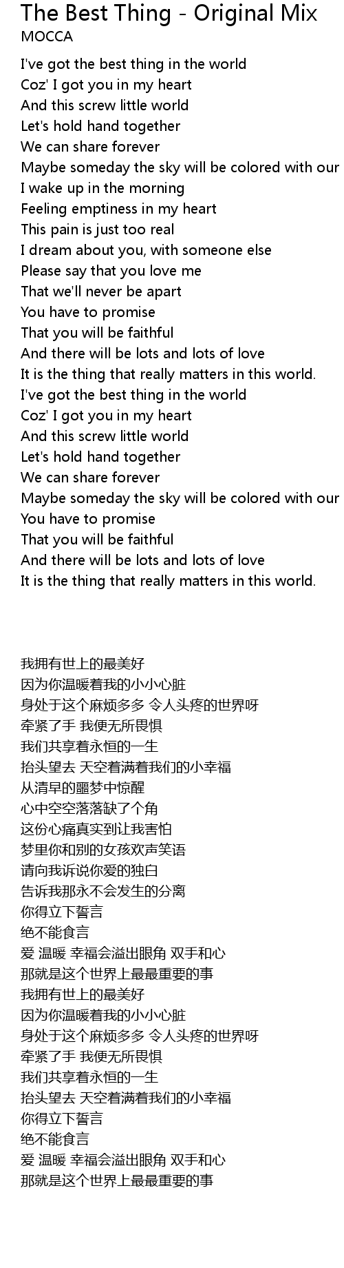 | [00:17.6] | I've got the best thing in the world |