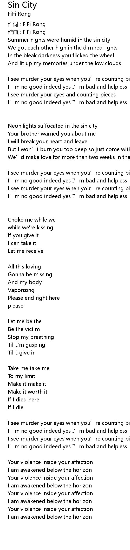 | I see murder your eyes when you' re counting pieces | |
