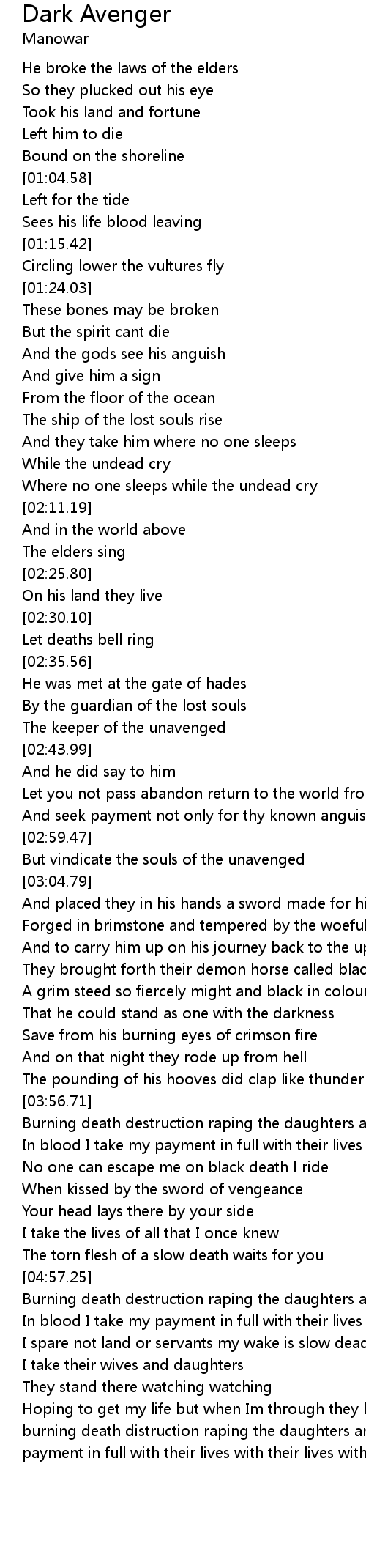 Forged in brimstone and tempered by the woeful tears of the unavenged |