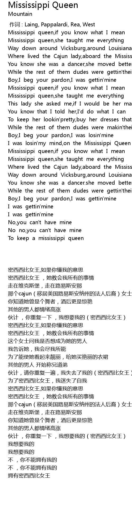 | [00:19.179] | Mississippi queen,if you know what I mean |