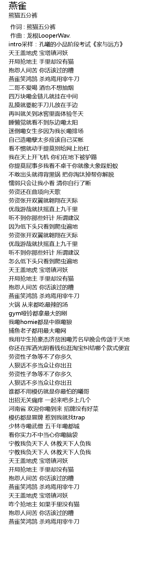 | [02:48.664] | yan que xiao hong hu sha ji yan yong zai niu dao |