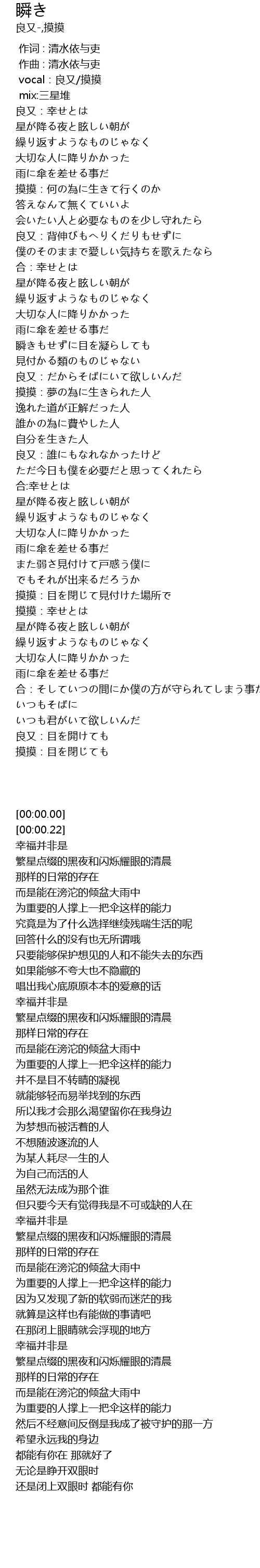 | [00:00.00] | vocal:良又/摸摸 |