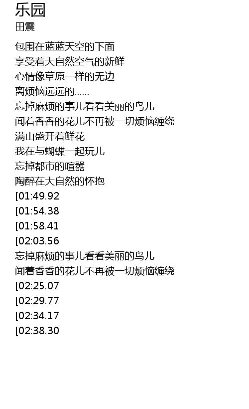 | [02:55.84][02:38.30] | 陶醉在大自然的怀抱 |