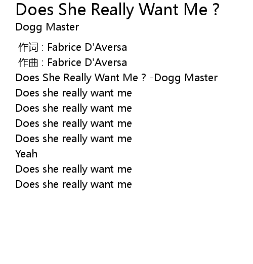 | [00:00.00] | Does She Really Want Me ? -Dogg Master |