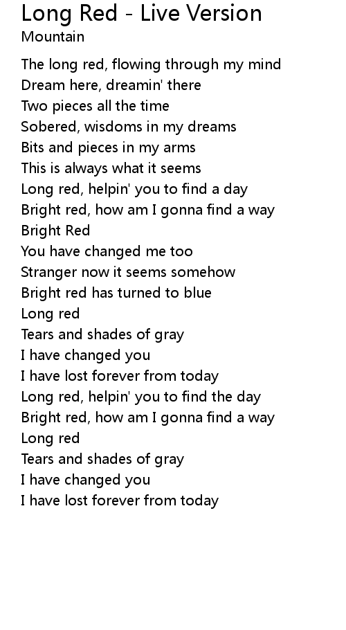 Long Red - Live Version Lyrics