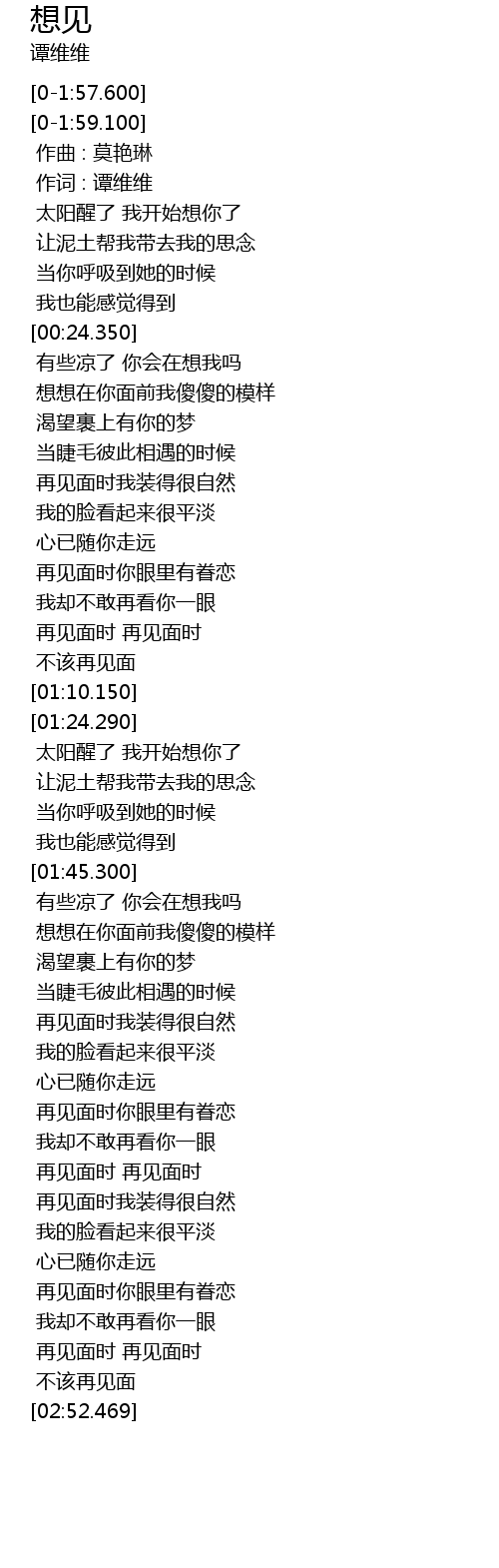 | [00:46.520] | zài jiàn miàn shí wǒ zhuāng de hěn zì rán |