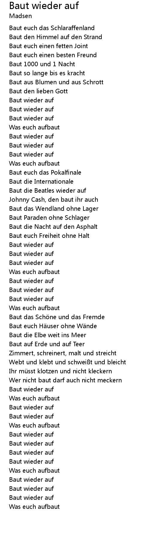 | Song | Baut wieder auf |