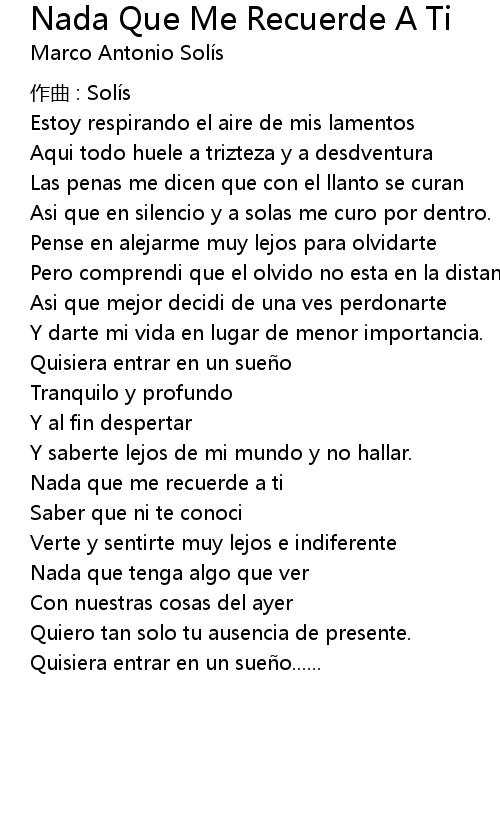 | Song | Nada Que Me Recuerde A Ti |