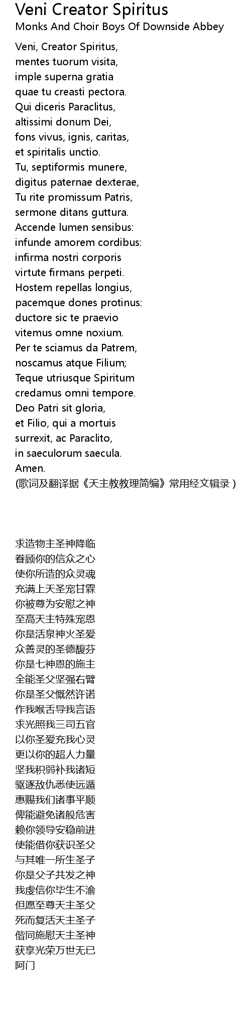 | [03:05.70] | (歌词及翻译据《天主教教理简编》常用经文辑录) |
