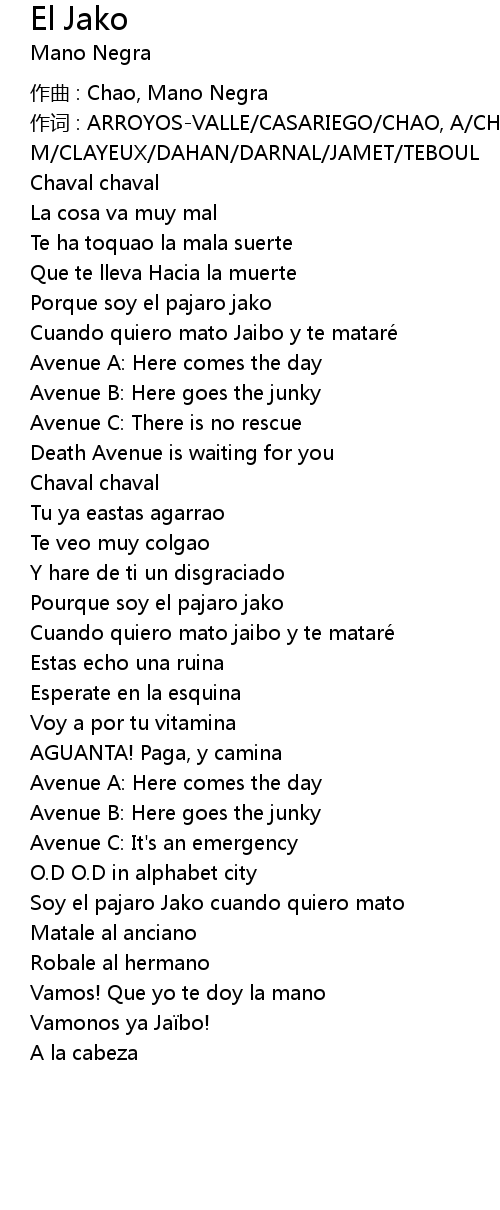 | 作曲 : Chao, Mano Negra | |