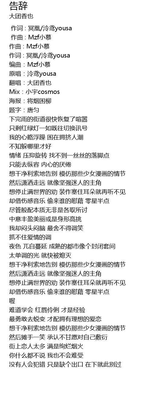 | [00:49.496] | 想干净利索地告别 模仿那些少女漫画的情节 |