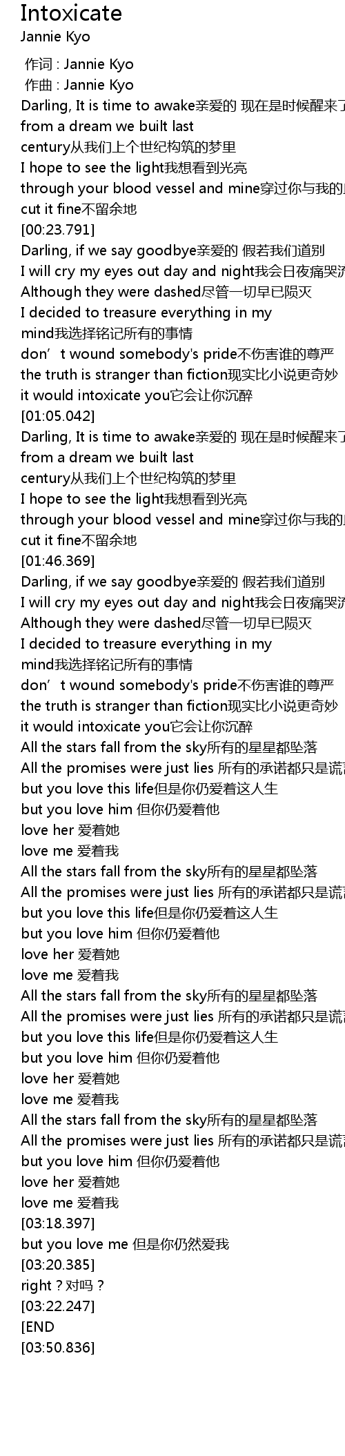 | [00:00.000] | 作词 : Jannie Kyo |