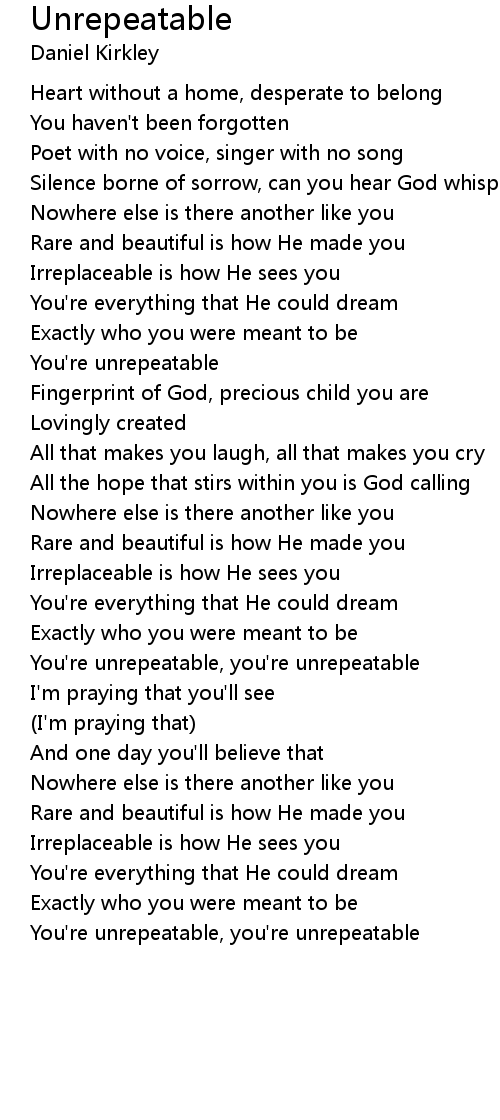 You're unrepeatable, you're unrepeatable |