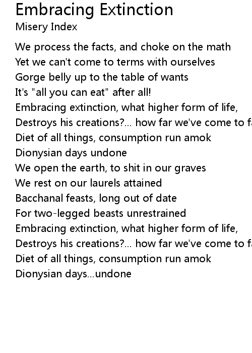 Embracing extinction, what higher form of life, |