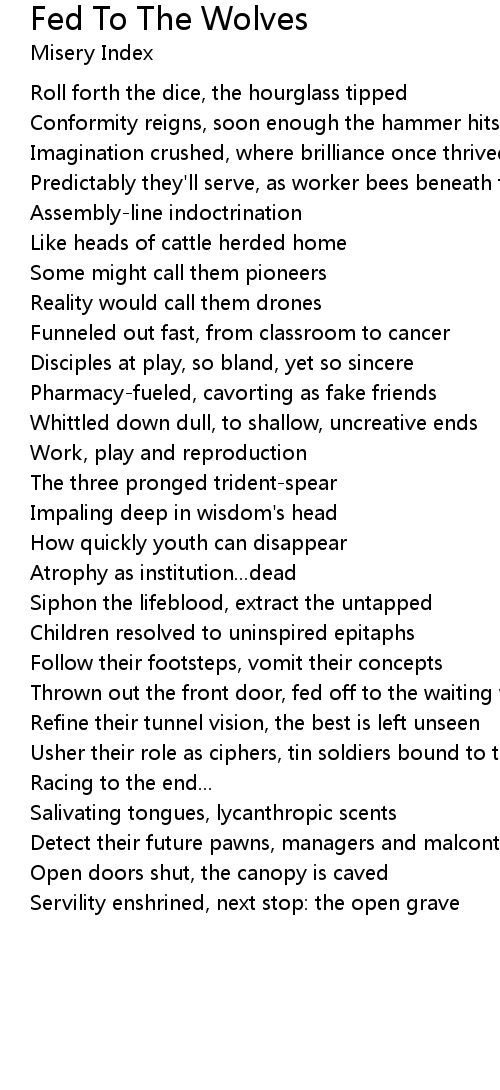 Thrown out the front door, fed off to the waiting wolves |