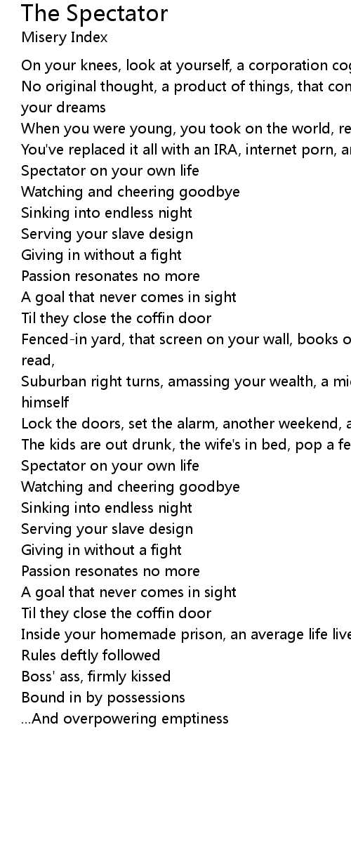 Suburban right turns, amassing your wealth, a middle-class pawn, in love with himself |