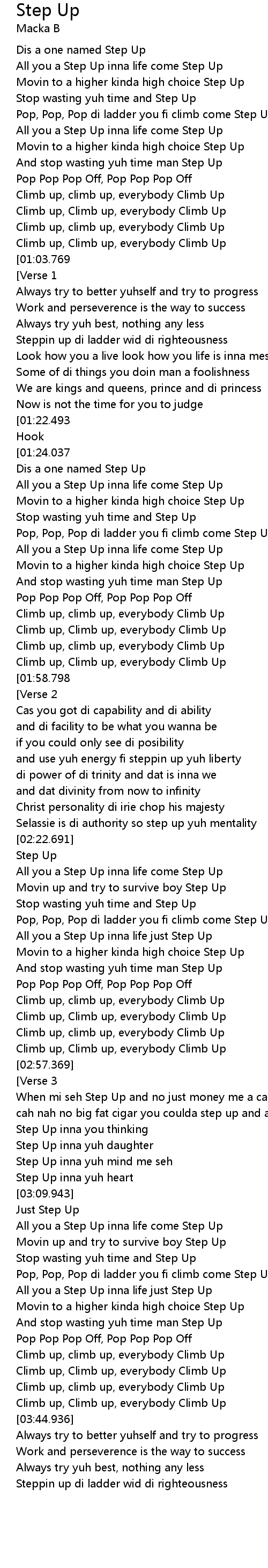 [03:19.149] Pop, Pop, Pop di ladder you fi climb come Step Up