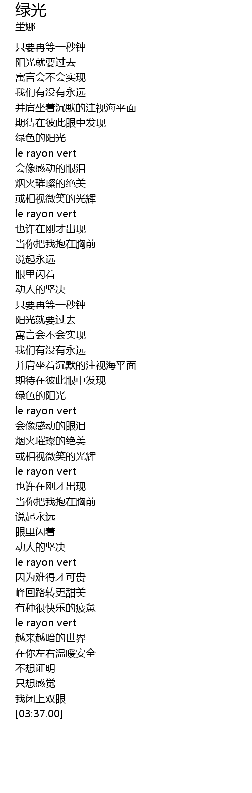 | [00:38.80] | 绿色的阳光 |