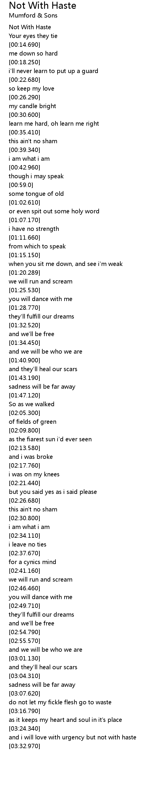 | [00:00.530] | Not With Haste |