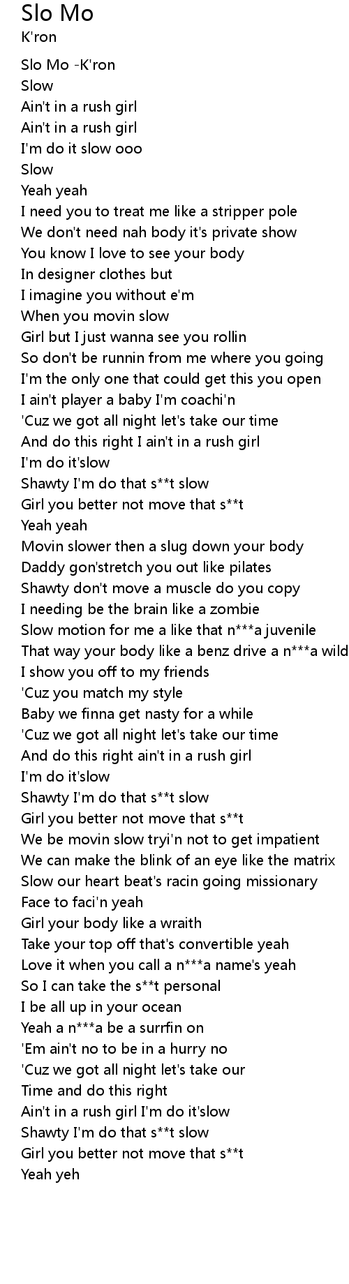 | [01:51.664] | Shawty I'm do that s**t slow |