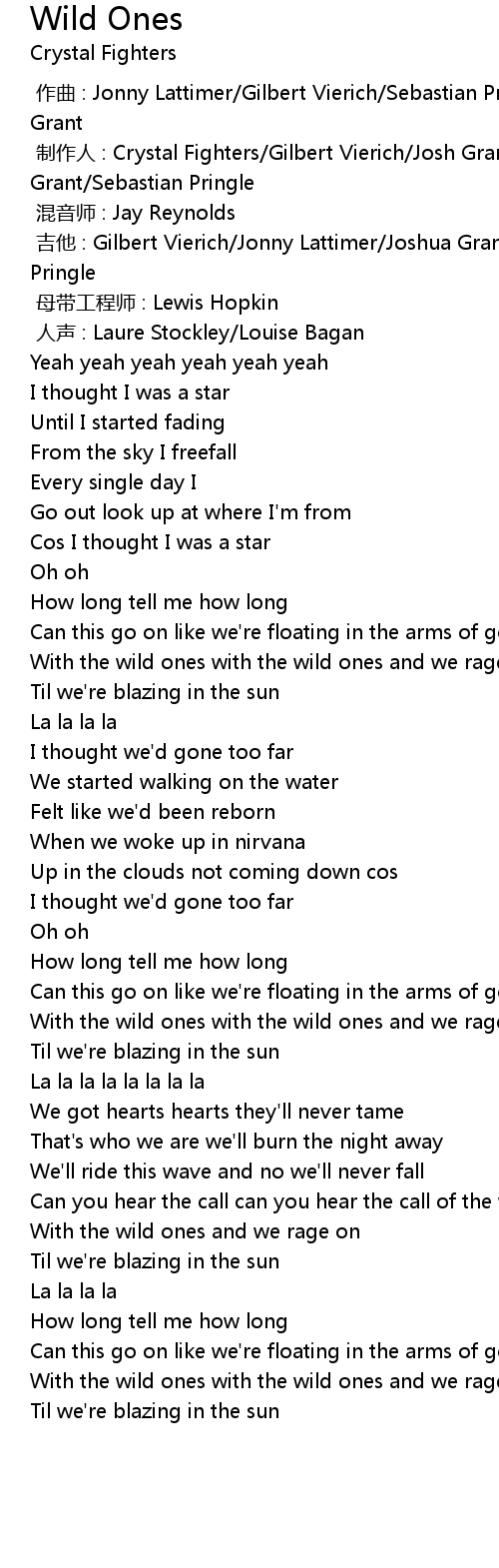 | [00:40.507] | With the wild ones with the wild ones and we rage on |