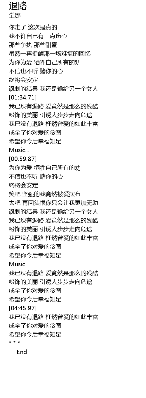| [01:36.68] | 我已没有退路 爱竟然是那么的残酷 |