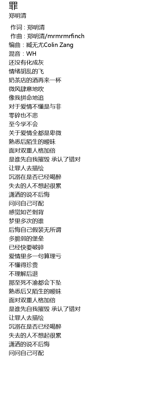 | [00:01.000] | zuo qu : zheng ming qing mrmrmrfinch |
