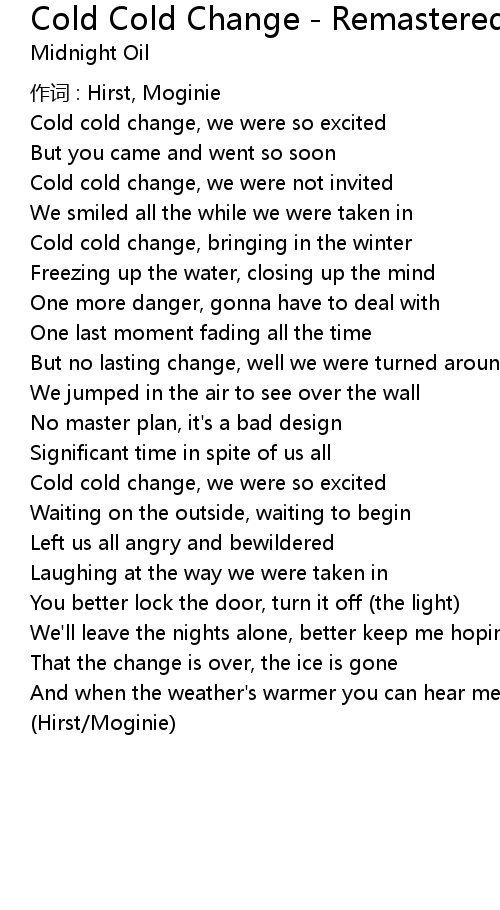 | Song | Cold Cold Change - Remastered (Flat Chat) |