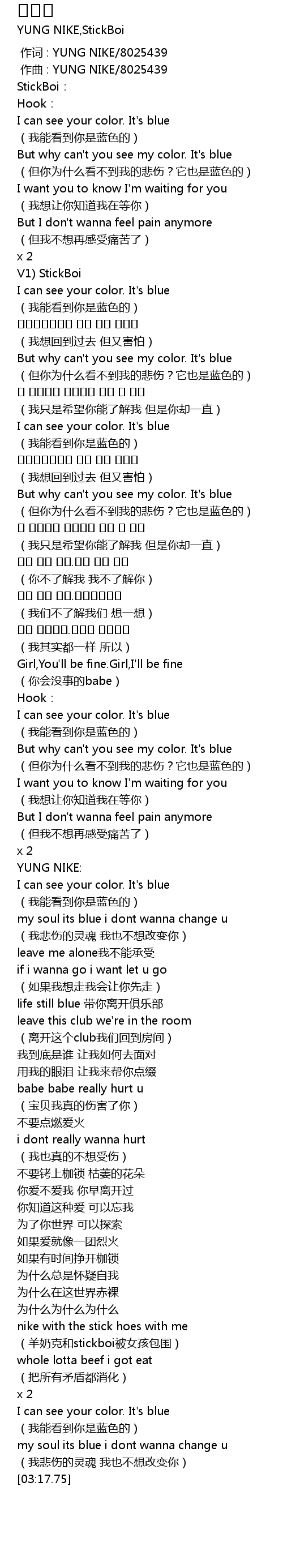 | [01:14.33] | But why can' t you see my color. It' s blue |